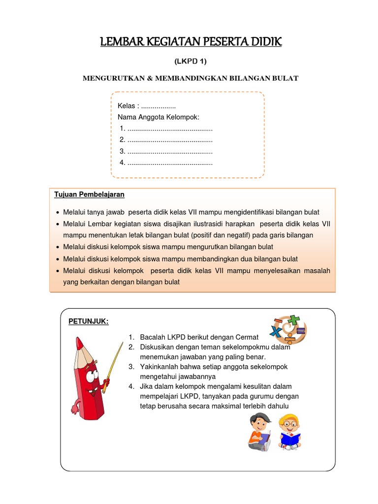 Melakukan operasi hitung bilangan bulat dalam pemecahan masalah. Kunci jawaban soal ulangan harian matematika kelas 6 sd bab 1 bilangan bulat a. 3) lembar observasi guru dan peserta didik siklus 1 4) lembar tes akhir siklus 1 beserta kunci jawaban b. Pengembangan modul ini diharapkan dapat menfasilitasi dalam proses pembelajaran. Pengembangan lembar kerja peserta didik (lkpd) pembelajaran matematika berbasis pendekatan contextual teaching and learning (ctl) pada materi bilangan bulat di kelas v sd savitri mahardika, i ketut suastika, nyamik rahayu sesanti* universitas kanjuruhan malang, indonesia savitrimahardhika48@gmail.com*