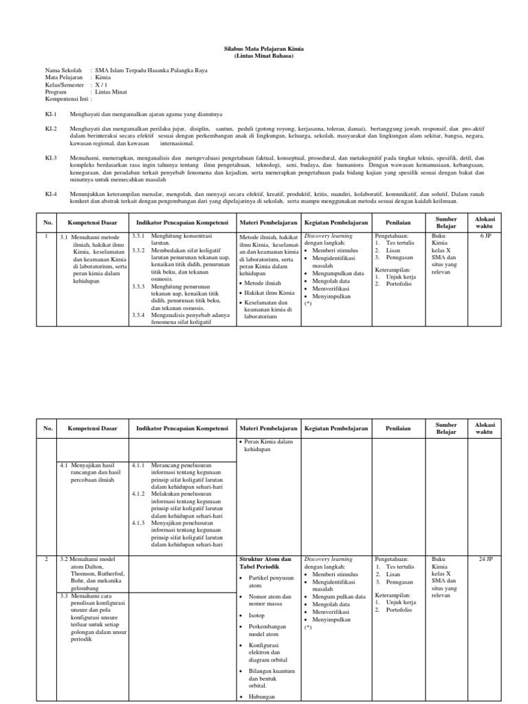 Silabus kimia kelas x k13 revisi 2020, yang digunakan saat ini ada yang sudah menerapakan kurikulum 2013.