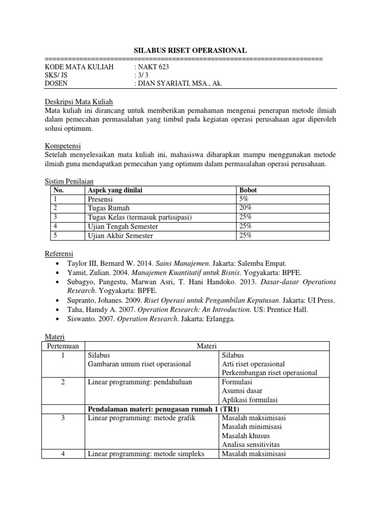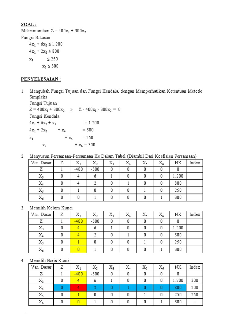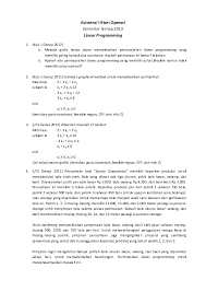 Jawaban soal uts teknik riset operasional ata 2002/2003 kelas : Contoh soal riset operasi program linear contoh soal dan. Kali ini pakdosen akan membahas tentang riset operasi? Suatu cara alokasi sumber daya yang tak terbatas jumlahnya secara maksimal untuk melaksanakan berbagai aktivitas yang memerlukan. Bayu memproduksi 2 jenis produk yaitu meja dan kursi, yang harus diproses melalui perakitan dan finishing, proses perakitan memiliki 60 jam kerja, sedangkan proses.